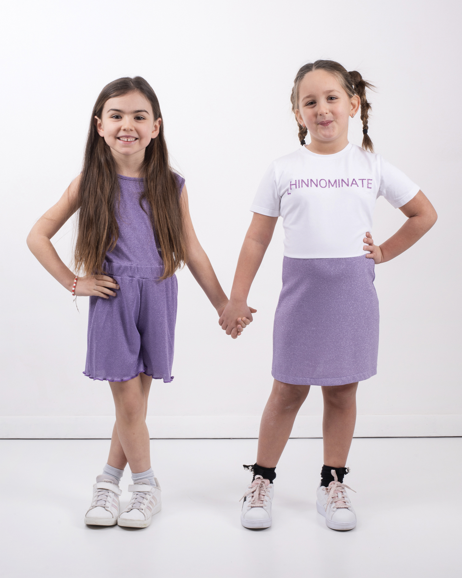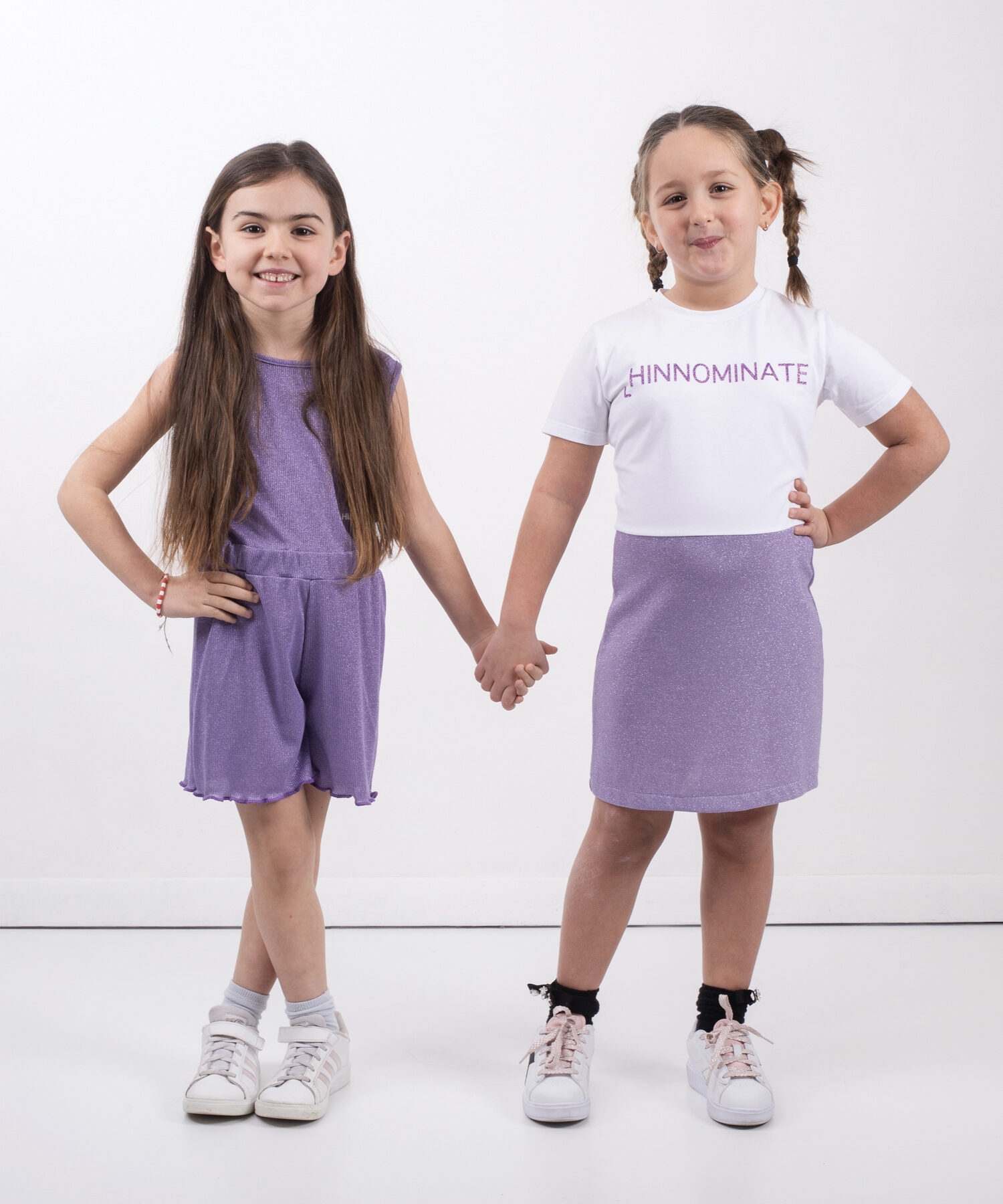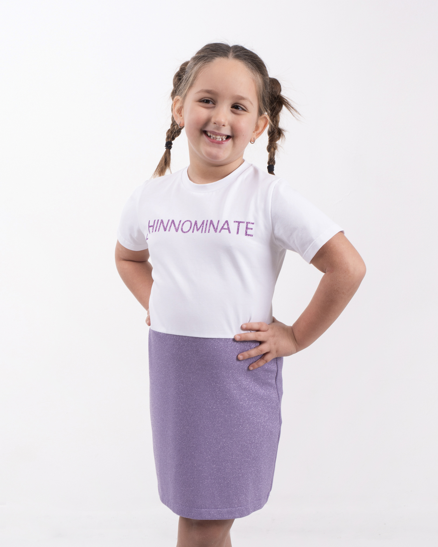 ABITO T-SHIRT, MANICA CORTA, IN COTONE CON ELASTICIZZATO, LOGO STAMPA CENTRALE GLITTERATO, GONNA IN JERSEY LUREX