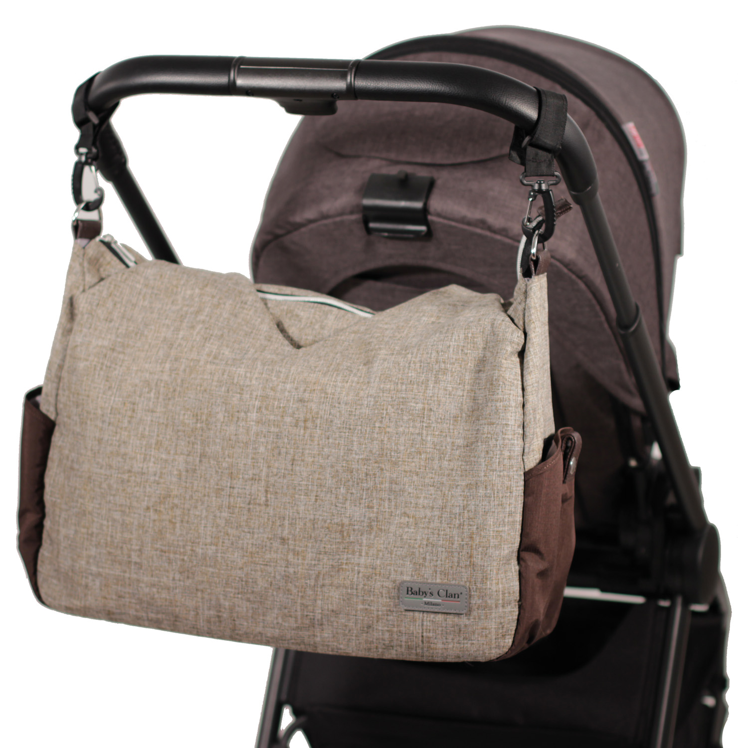 - Ganci (rimovibili) per fissare la borsa al manico del passeggino