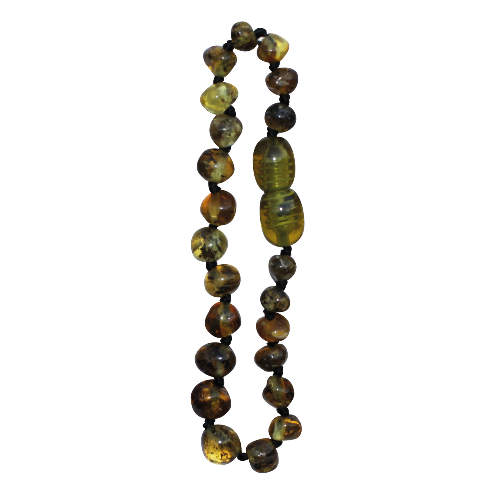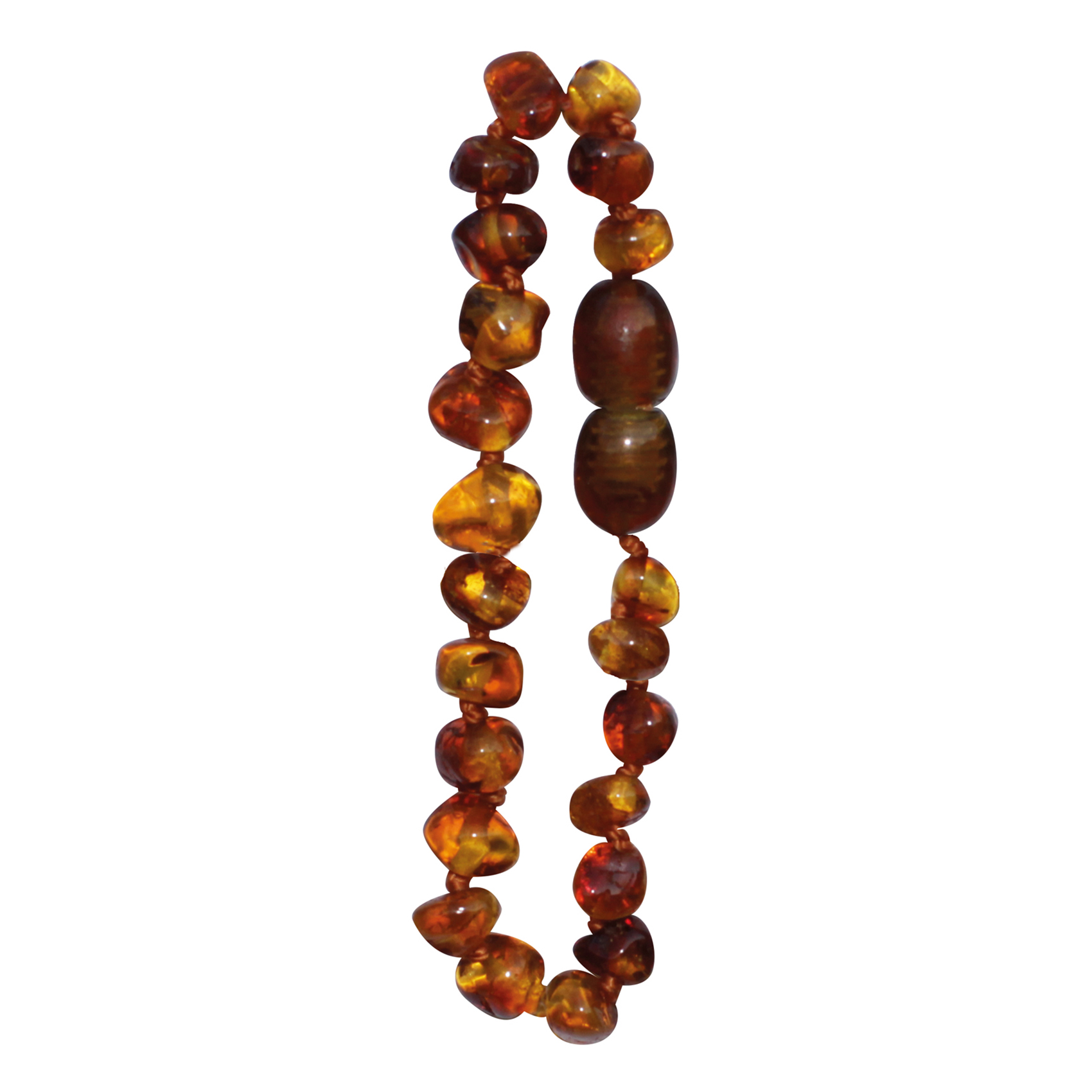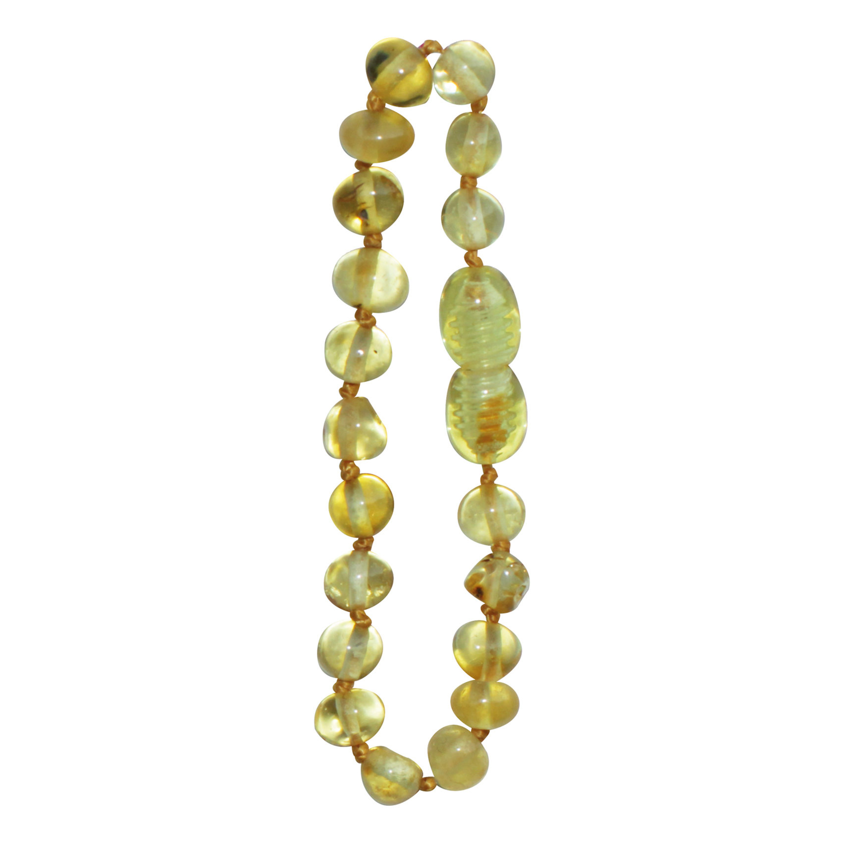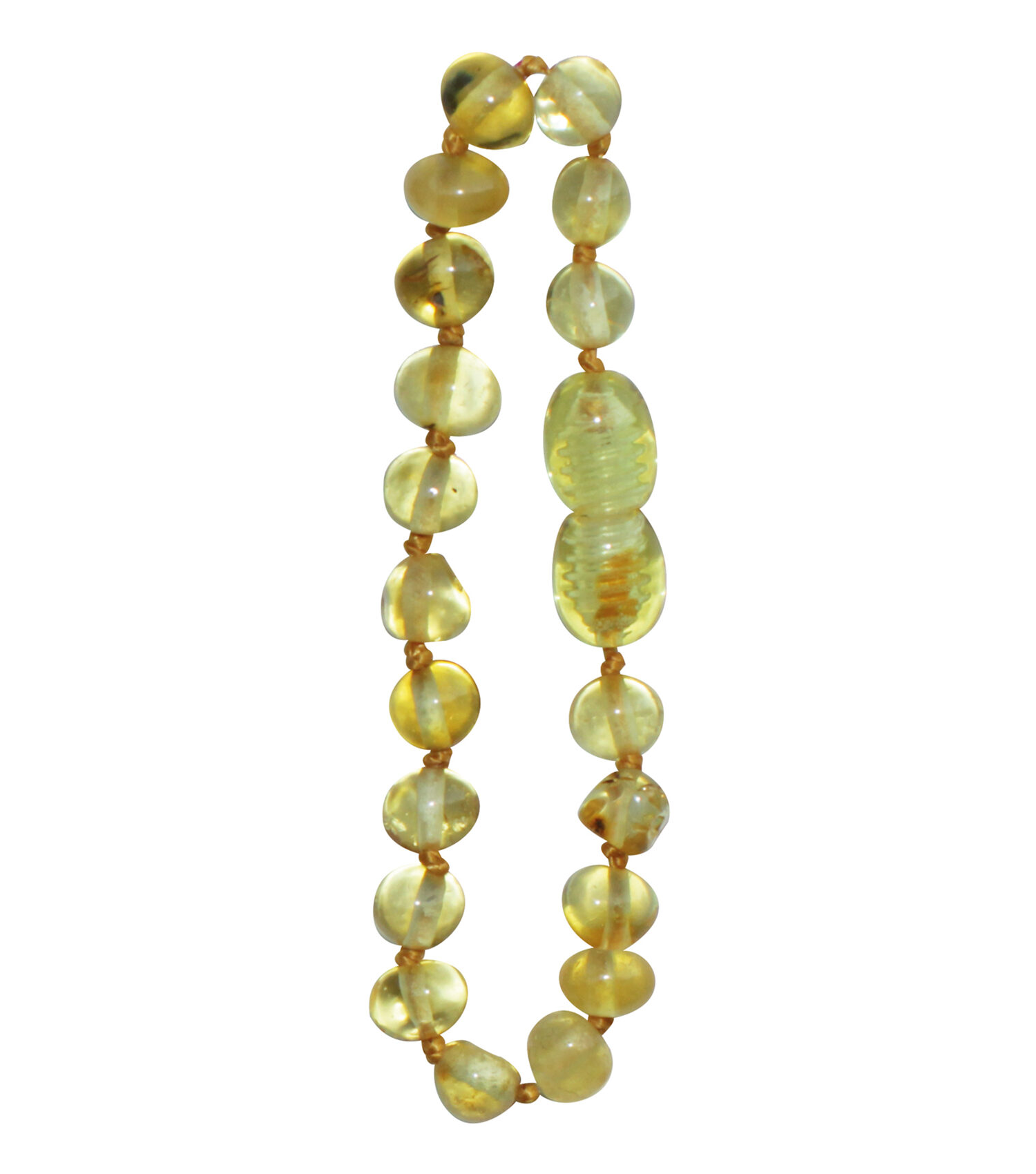 Ambra: l’oro del Baltico.L’ambra baltica è una resina fossile molto pregiata. Utilizzata sin dai tempi più remoti per creare raffinati monili e come moneta di scambio. All’ambra sono attribuite importanti virtù curative: a contatto con la pelle secerne infatti piccolissime quantità di acido succinico, la cui concentrazione varia dal 3 all’8%, che agisce come biostimolante, migliorando e proteggendo lo stato di salute generale di chi la indossa. Per beneficiare degli effetti positivi dell’ambra, la collana deve essere sempre indossata a contatto con la pelle.Azione antinfiammatoria e analgesica naturale: perfetta per i dolori da dentizione!Il bracciale per bambini Anima Baltica svolge un effetto calmante sui dolori provocati dalla dentizione: l’acido succinico contenuto nell’ambra agisce sulle ghiandole salivari riducendo la salivazione e esercitando una funzione antinfiammatoria e analgesica naturale. Influisce positivamente sui dolori muscolo-scheletrici che possono accompagnare la crescita e rinforza il sistema respiratorio e l’apparato bronco-polmonare, alleviando i sintomi di raffreddore, asma, allergie e infiammazioni di varia origine e natura. Favorisce il relax e il buon sonno grazie al suo effetto calmante.Amica dell’ambiente e sicura per i bimbi!La linea Anima Baltica è 100% green: le collane e i bracciali non contengono parti metalliche. Ogni elemento è lavorato con effetto “baroque” che rende ogni singola pietra arrotondata. Le pietre sono intervallate da un nodo per evitare che in caso di rottura del filo possano sfilarsi ed essere ingerite dal bambino.Si consiglia di sciacquare i bracciali e le collane Anima Baltica sotto acqua corrente almeno una volta ogni tre giorni.
