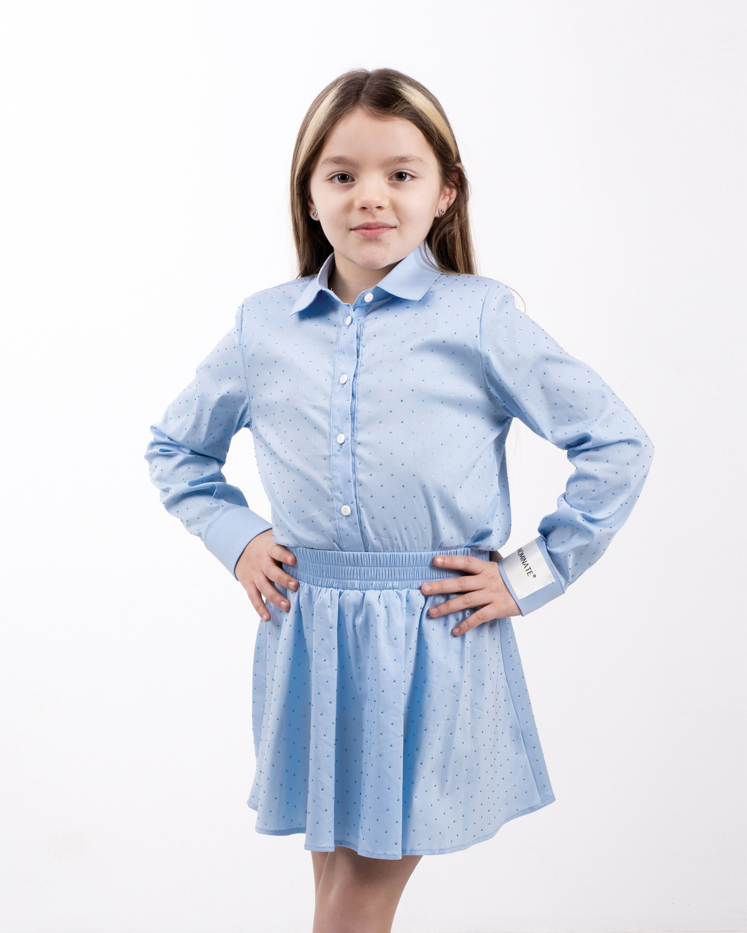 CAMICIA REGULAR FIT, CON STONDATURA, MANICA LUNGA, SPALLINE, APERTURA TOTALE CON BOTTONI , APPLICAZIONE STRASS