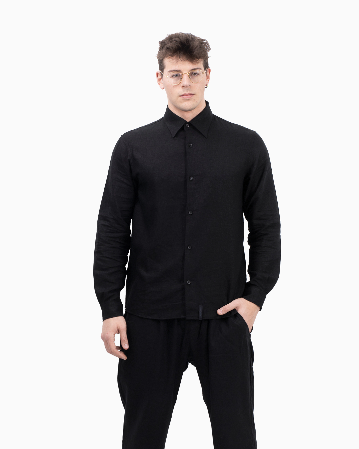 CAMICIA IN LINO BASICA CON ETICHETTA