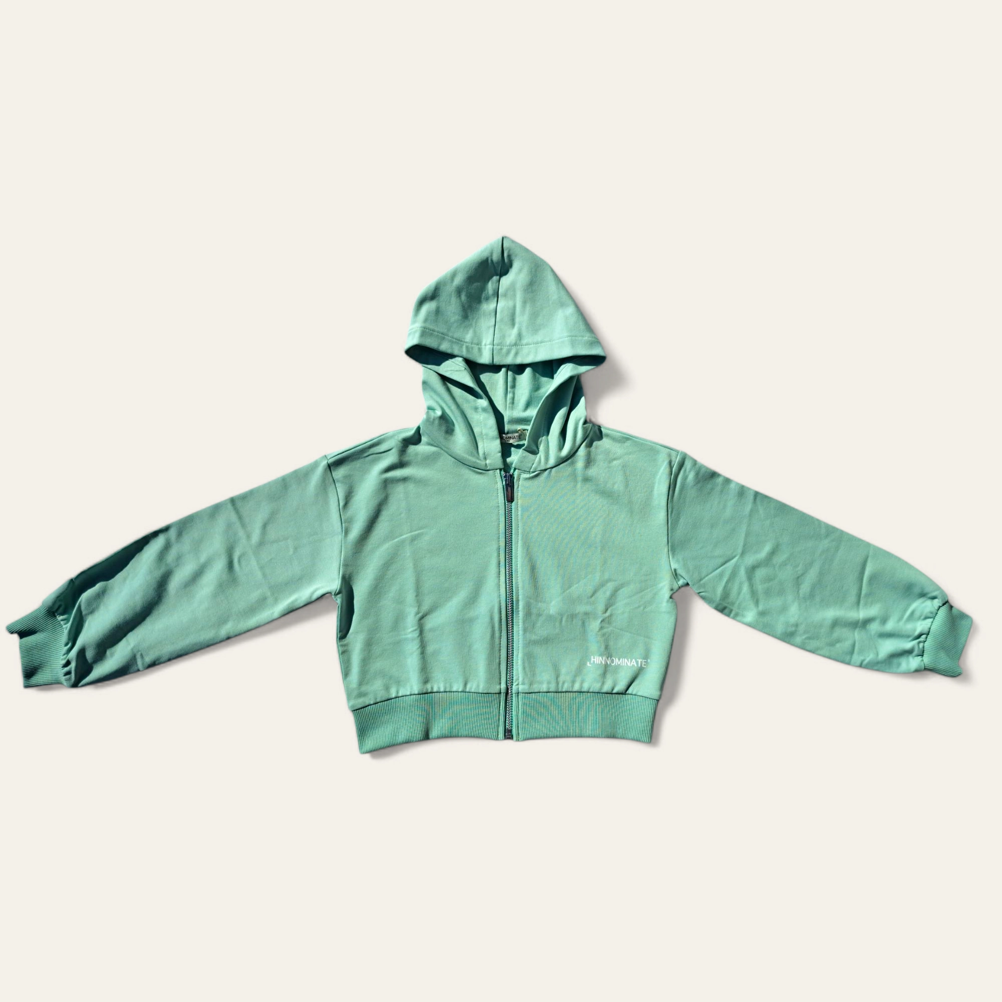Felpa per bambina in verde giada, perfetta per la stagione Primavera/Estate 2025. Realizzata in un morbido tessuto composto al 95% da cotone e al 5% da elastan, offre comfort e libertà di movimento.