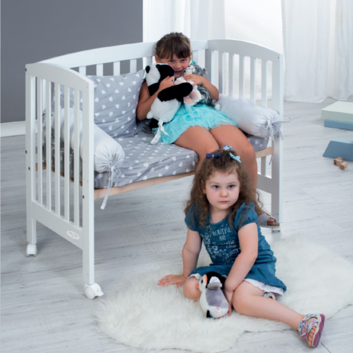 La culla Nami co-sleeping firmata Baby’s Clan con le sue linee semplici e il suo design pulito è ideale per i primi mesi, quando mamma e bimbo hanno necessità di dormire vicino. Si aggancia facilmente a tutti i letti matrimoniali mediante le apposite cinghie in dotazione, ma può essere usata anche in modalità classica: basta tirare su la sponda laterale! Infine, quando il bimbo sarà più grande, Nami potrà essere utilizzata come simpatico divanetto per la sua cameretta! E’ dotata di 4 ruote piroettanti che ne agevolano lo spostamento. Nami è realizzata in Italia, dipinta a mano con vernici atossiche ed è disponibile solo in bianco.Disponibili materasso su misura e coordinato tessile, anch’essi firmati Baby’s Clan acquistabili separatamente.