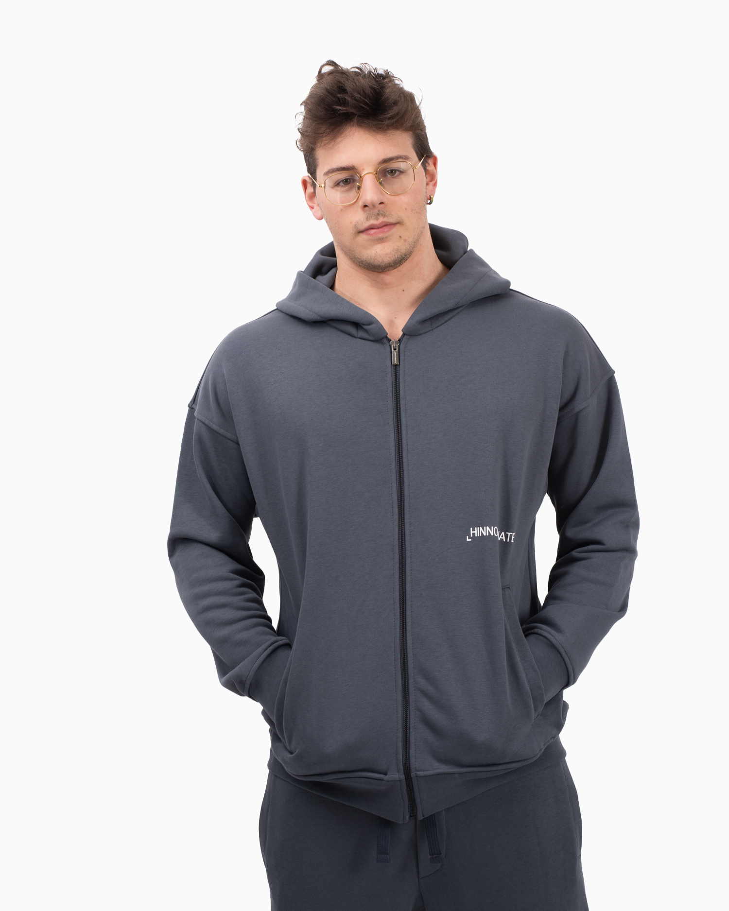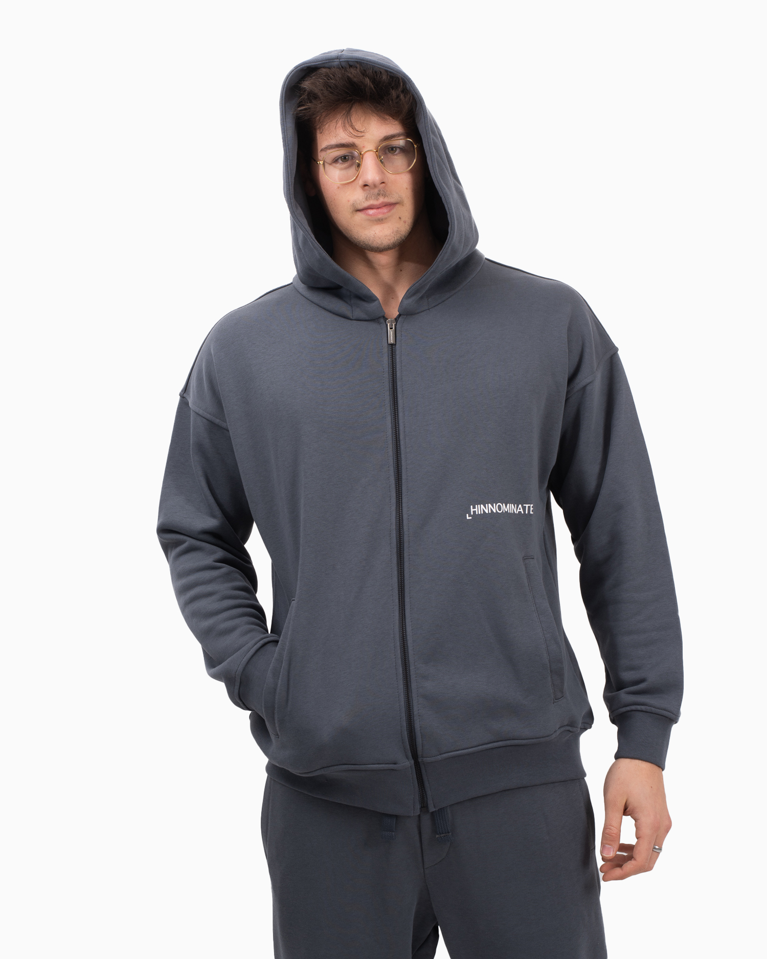 FELPA CAPPUCCIO BASICA ALL ZIP CON STAMPA