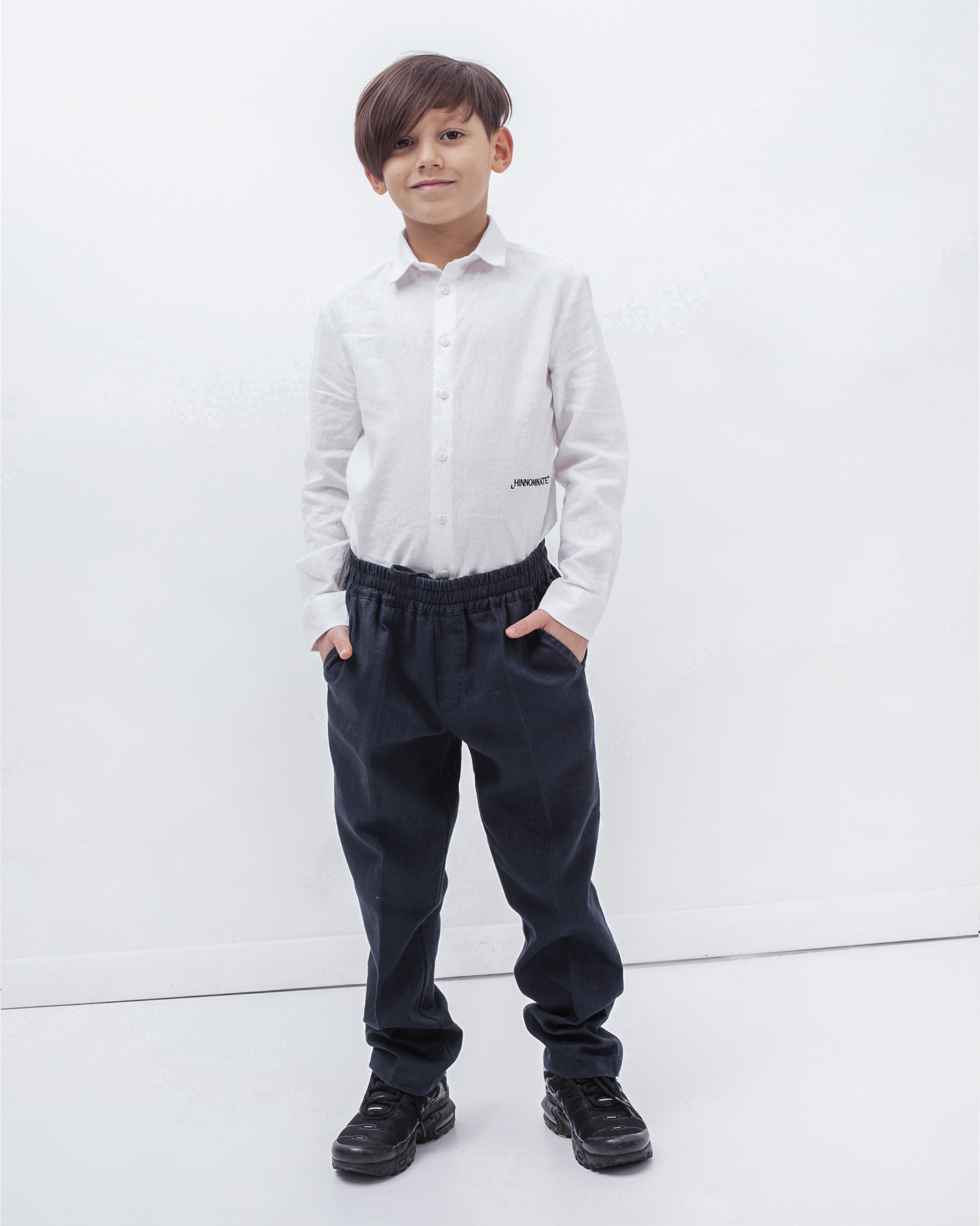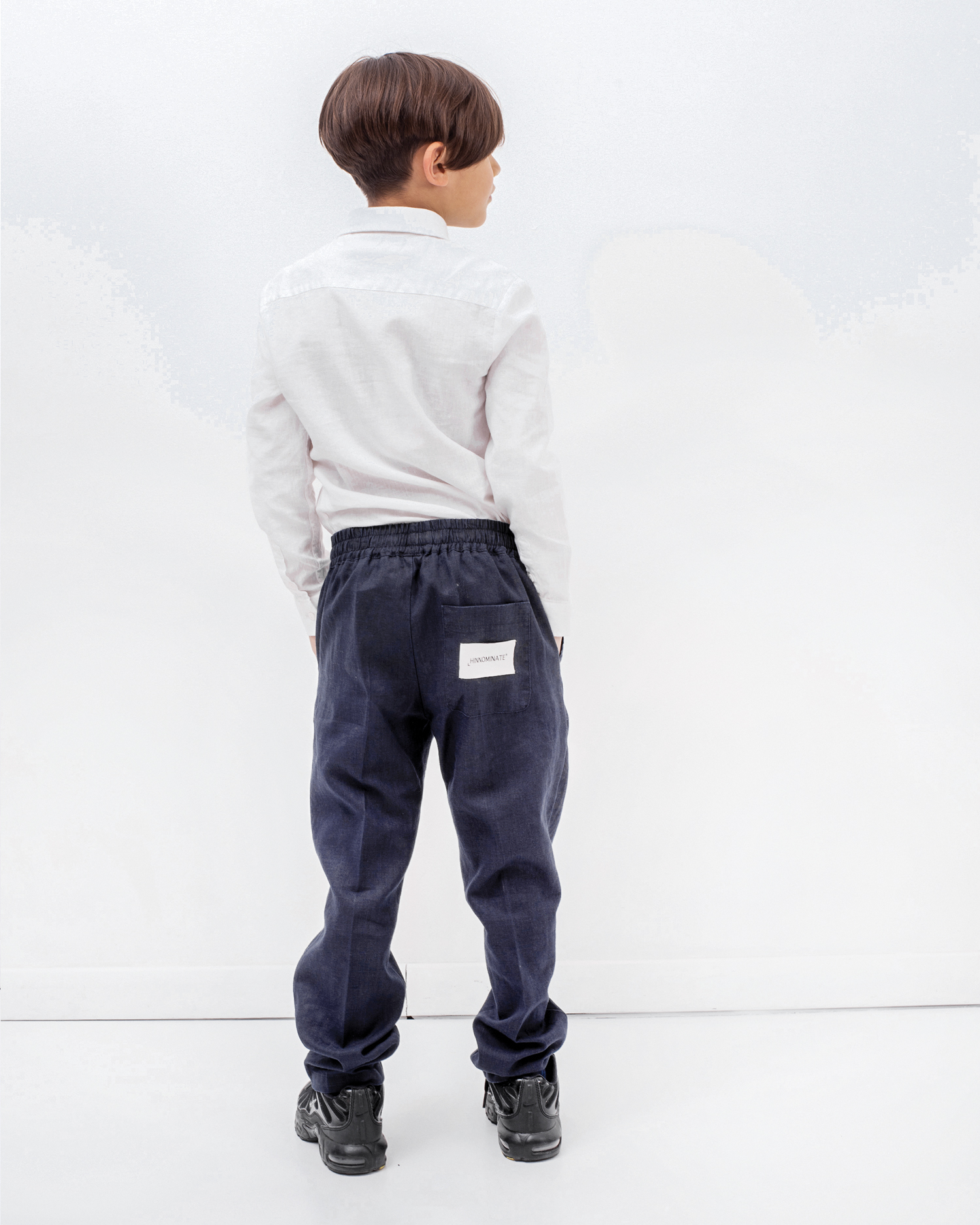 PANTALONE CHINO IN LINO, FASCIA ELASTICO IN VITA, TASCHE ALLA FRANCESE