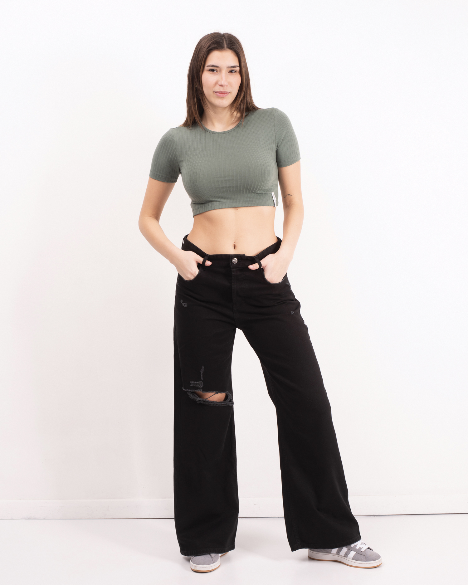 PANTALONE IN BULL DENIM A PALAZZO CON ROTTURE
