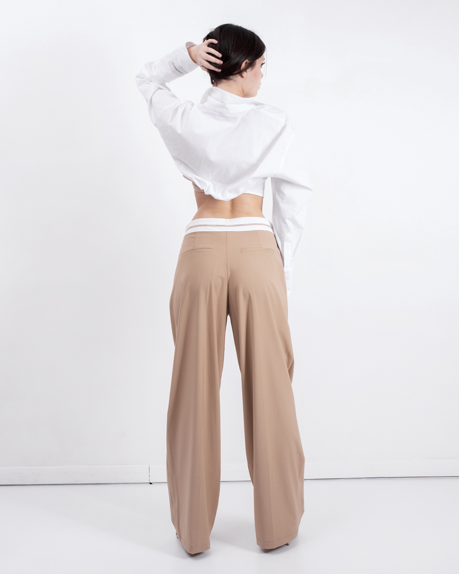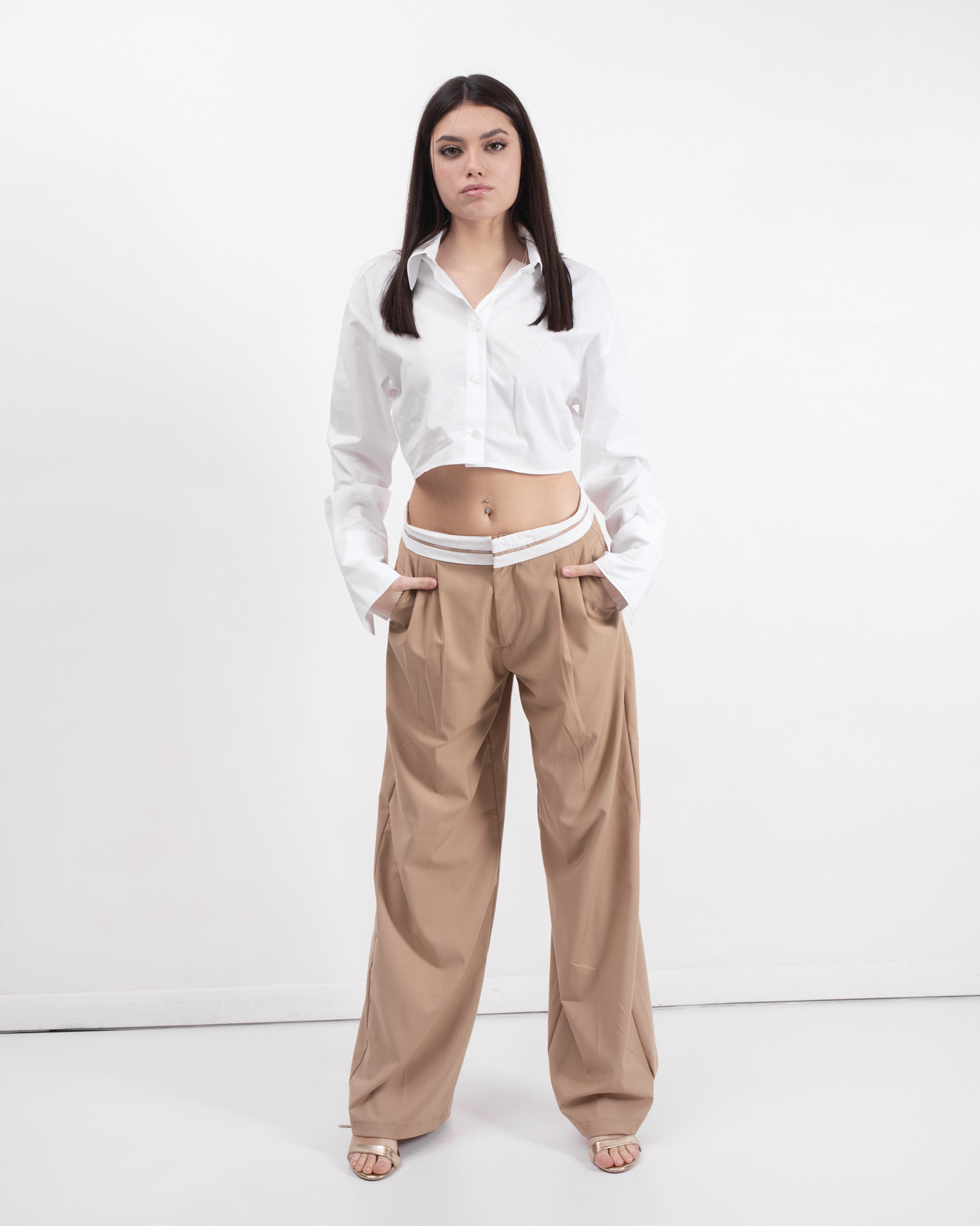 PANTALONE DRITTO IN POLIVISCOSA CON CINTO LOGATO