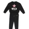 - Outfit: collo rotondo, polsini elastici, scritta dorata anteriore centrale