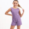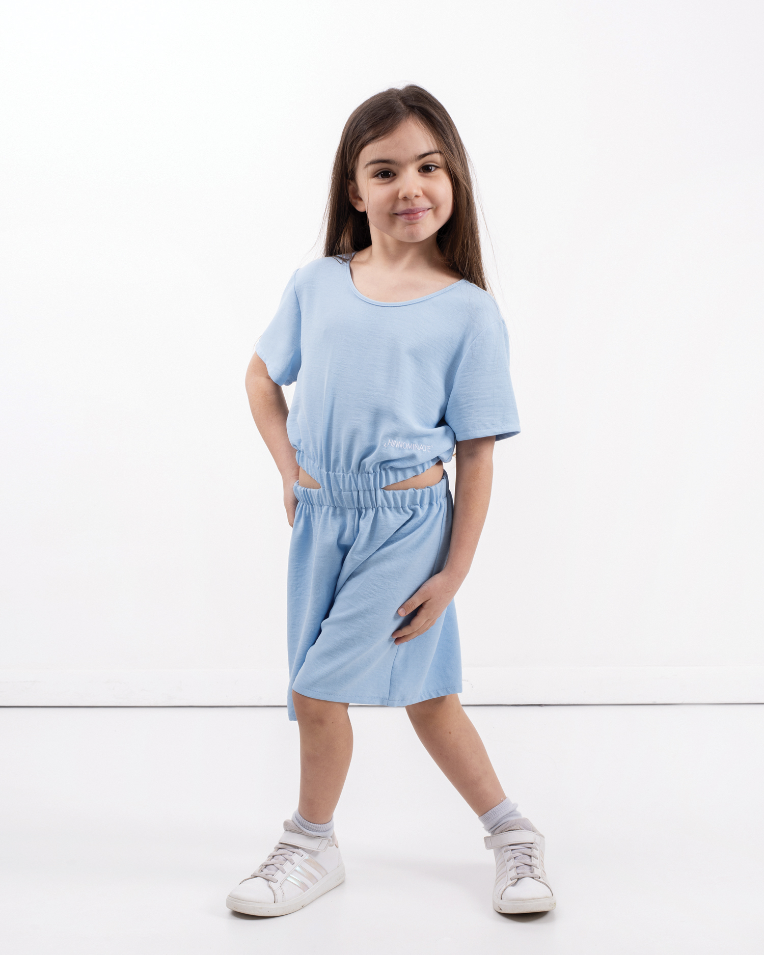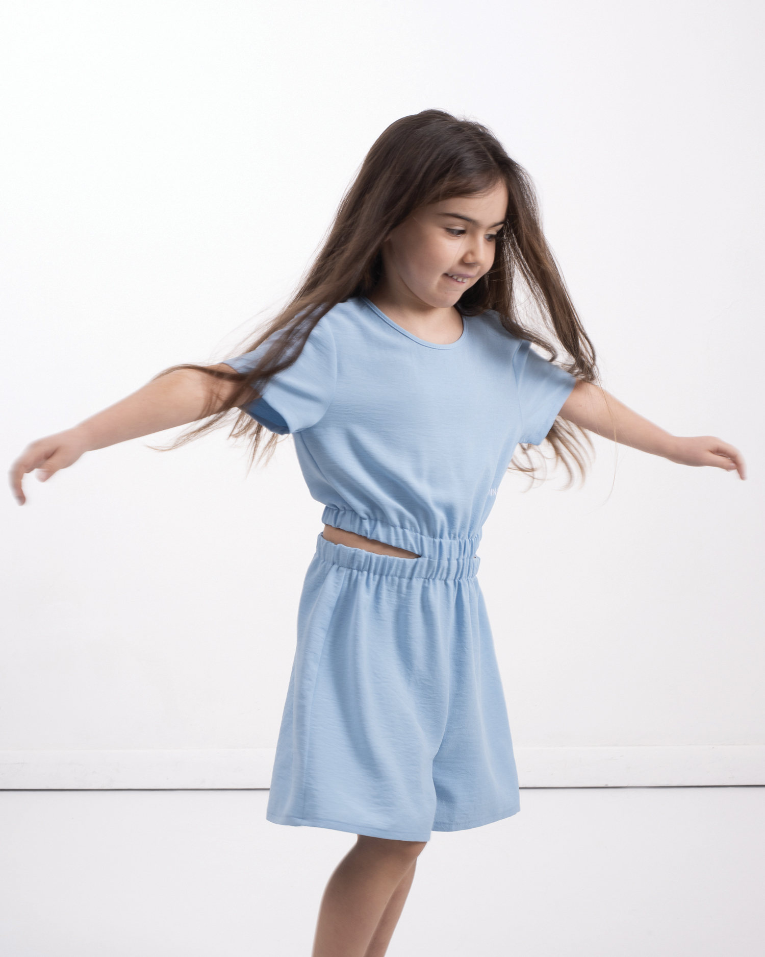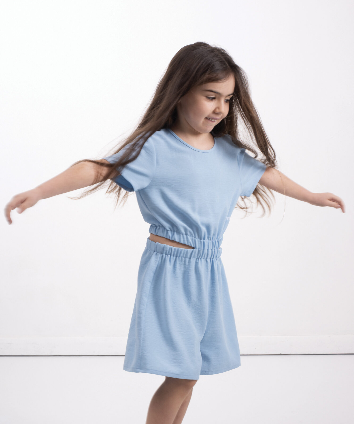TUTA MINI JUMPSUIT MEZZA MANICA, TESSUTO EFFETTO GOFFRATO, CON CINTO ELASTICO STACCATO